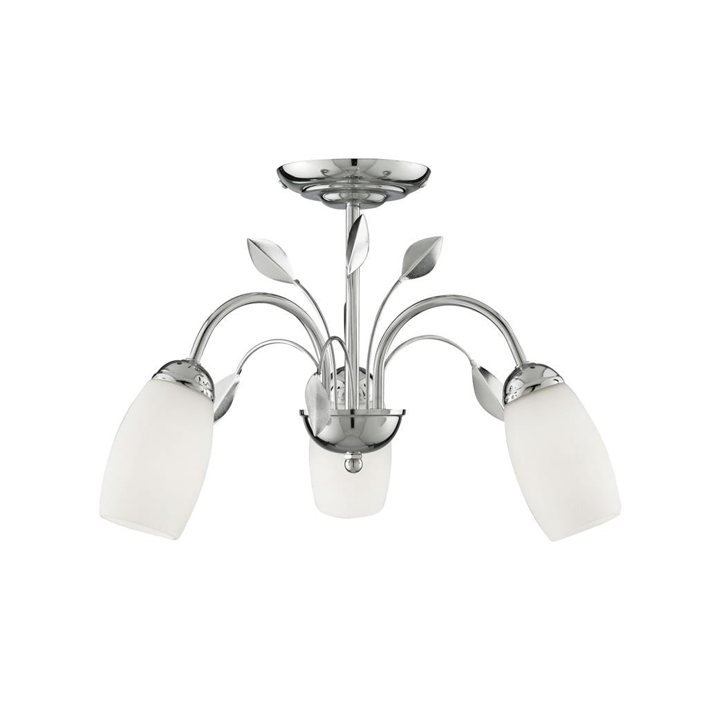 The Searchlight SL-700016 3-Light Ceiling Fixture combines elegant chrome detailing with beautifully crafted white glass shades and decorative leaf accents. Designed to enhance living rooms, hallways, and bedrooms, it provides warm, even illumination with a stylish modern-classic aesthetic. Its durable construction and high-quality finish ensure long-lasting performance while adding a decorative touch to any interior space.
